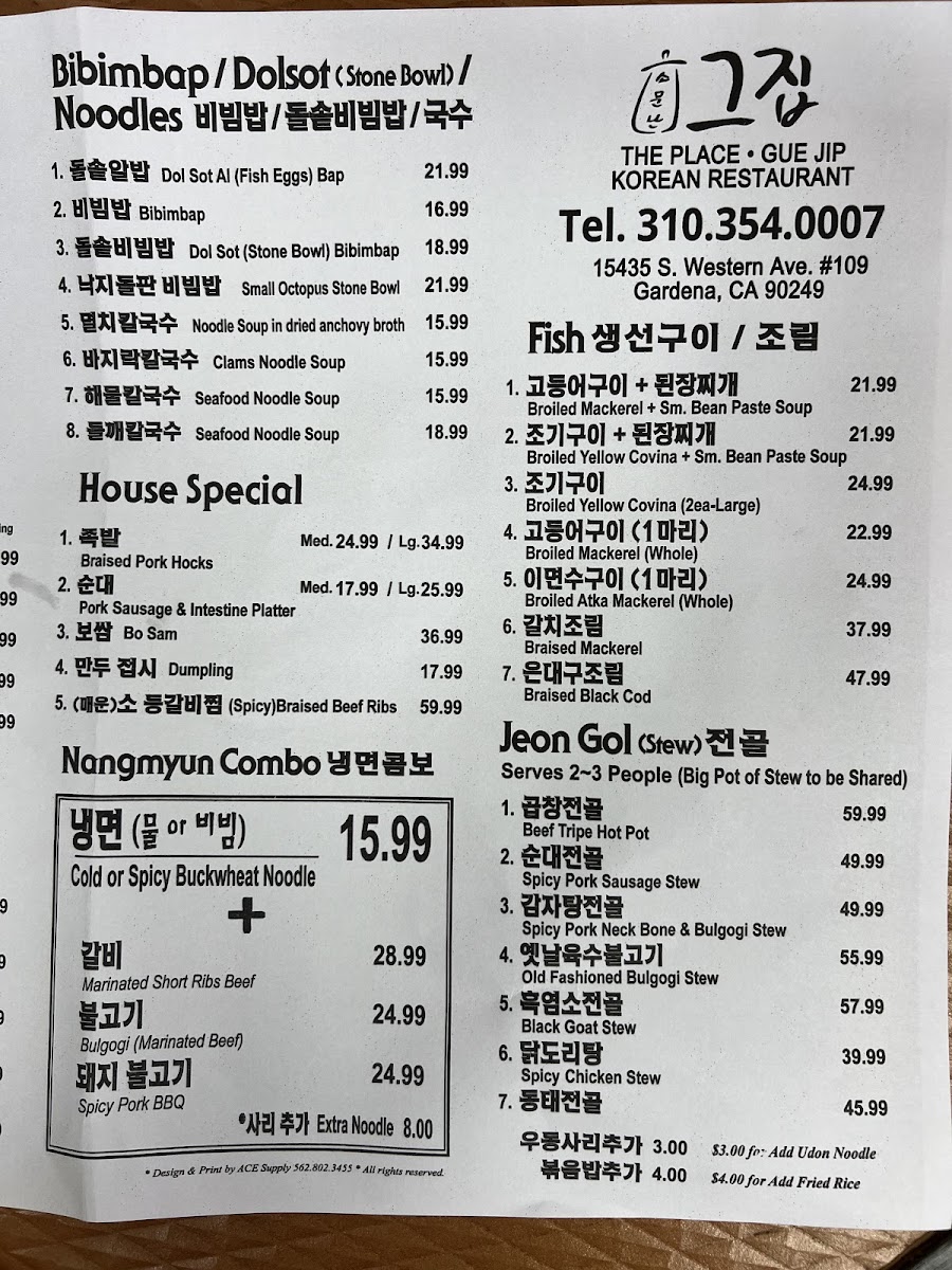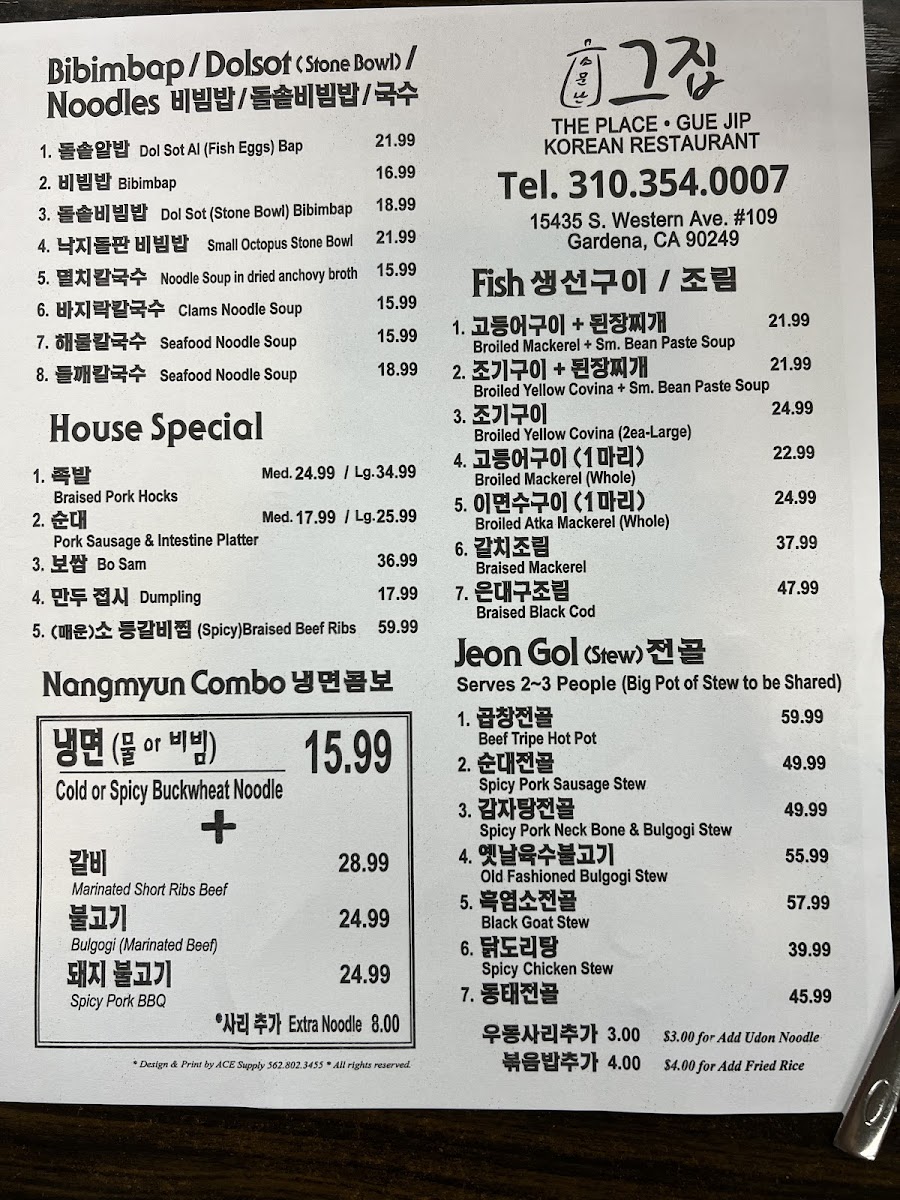 Located in Gardena, California, The Place Gue Jip Restaurant offers an authentic Korean culinary experience that tantalizes the taste buds. The menu showcases a variety of dishes, each crafted with precision and passion, making it a must-visit for Korean food lovers.